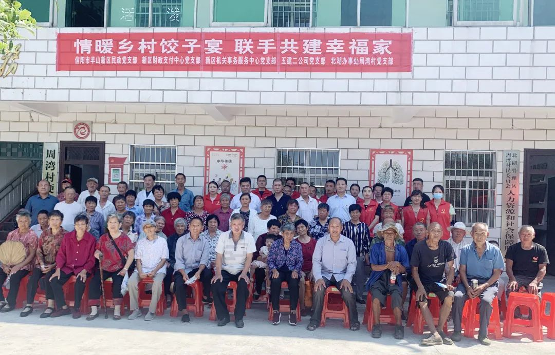 7月10日上午,信陽(yáng)市羊山新區(qū)北湖辦事處周灣村村委會(huì)大院里歡聲笑語(yǔ)不斷,幾十位老人正在品嘗著美味的餃子。此次餃子宴活動(dòng)由周灣村聯(lián)合